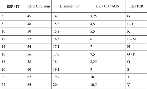Se la tua taglia non è presente tra quelle disponibili, non preoccuparti: inseriscila nelle note dell’ordine, il tuo gioiello sarà creato appositamente per te.
